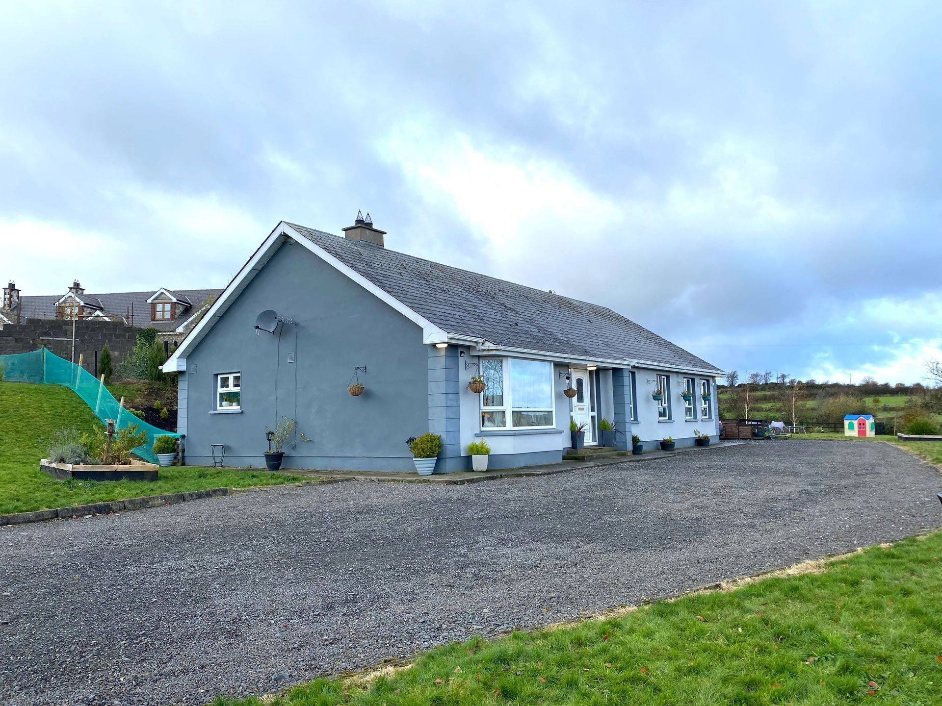 We offer for sale Carraig Beag , Bock Middle a delightful modern 4 bed bungalow , located on an elevated site overlooking the country side . Situated only 10min from Carrickmacross and 5min from Lough Egish business park 12 min from Castleblayney. Very modern fit out which can be seen from the photos . Excellent B3 BER rating allowing cheaper heating costs with possible benefit of obtaining a more attractive green mortgage rate . The property also has the benefit of recently fitted solar panels on the roof. The garden are extended just under 1 acre in layout with landscaped scrubs