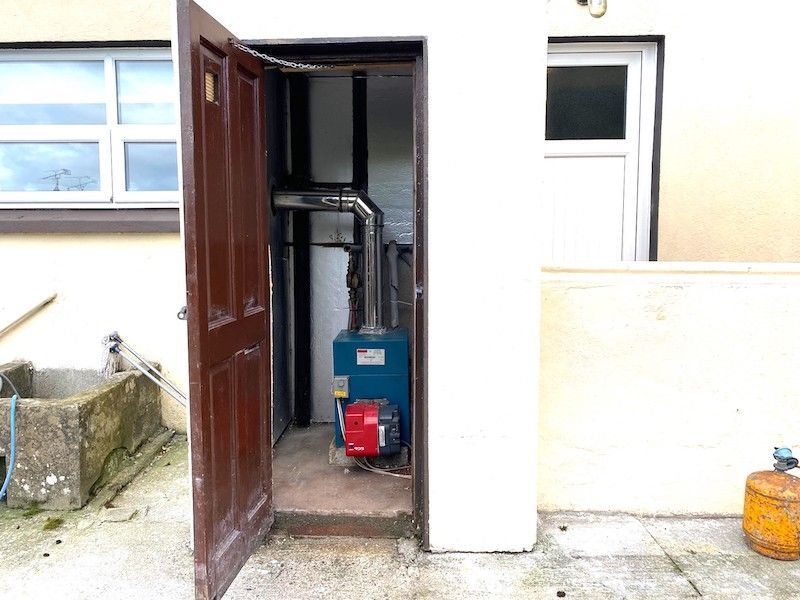 • Oil fired central heating with radiator in each area. Modern serviced oil burner in insulated boiler house.