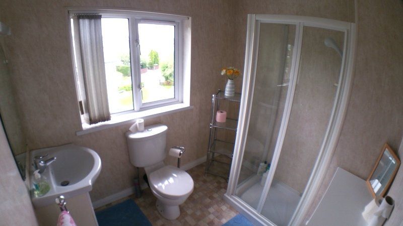 - Family Bathroom has Lino flooring with Pvc sheeted walls, WHB, WC & Shower.