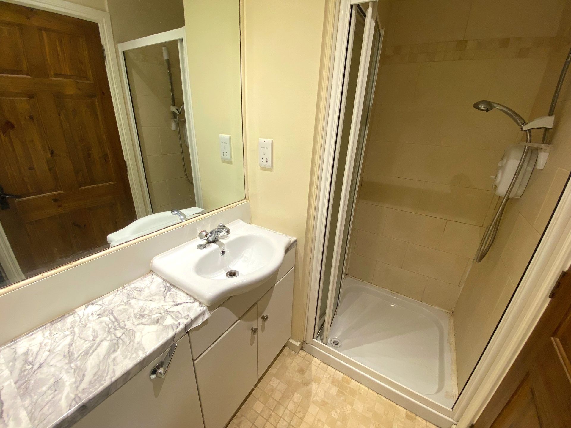 - Modern suite with WC, WHB, and shower.