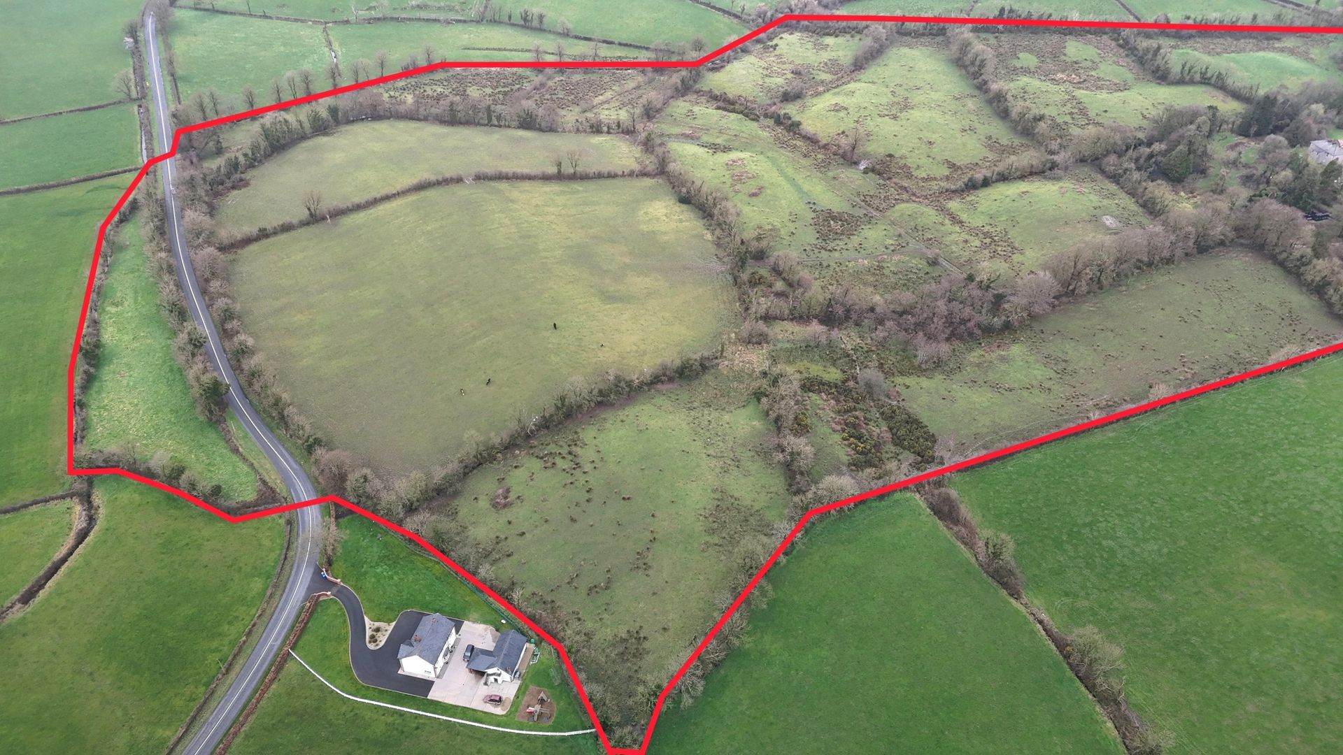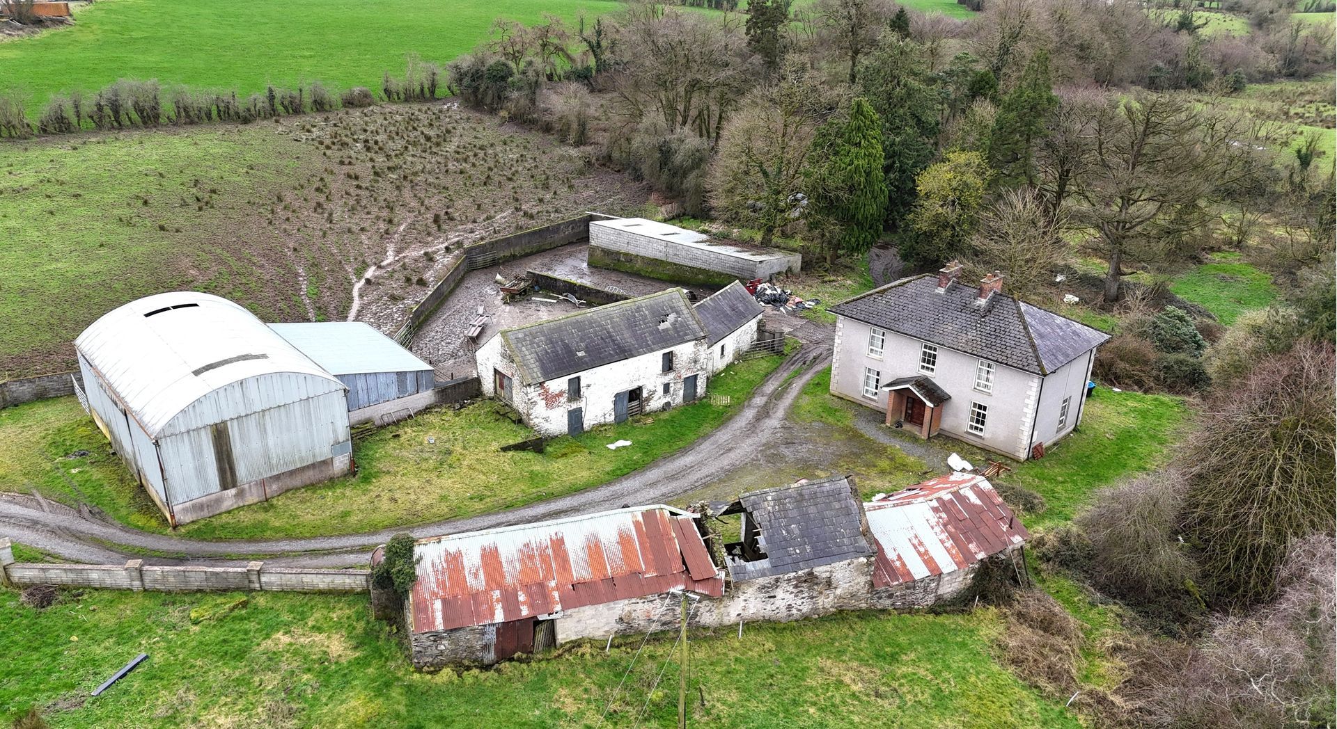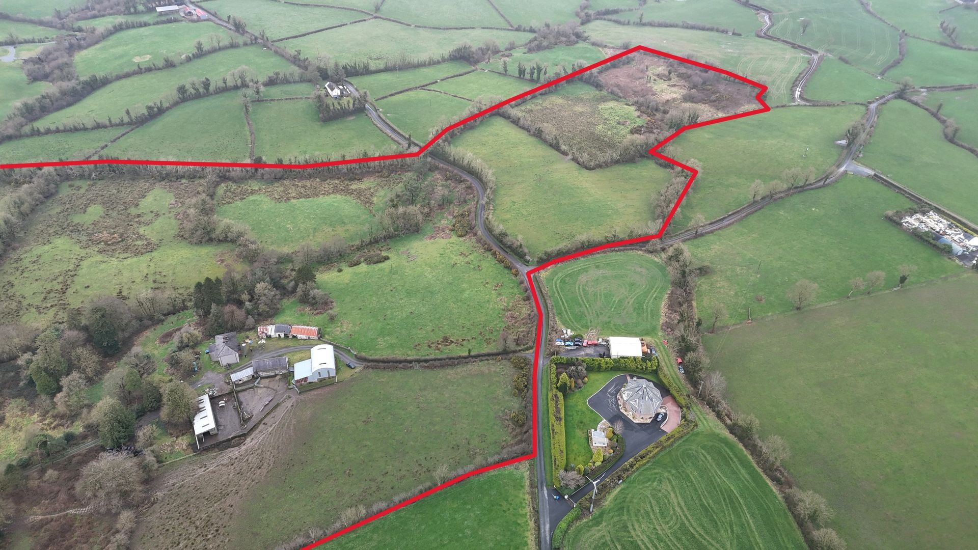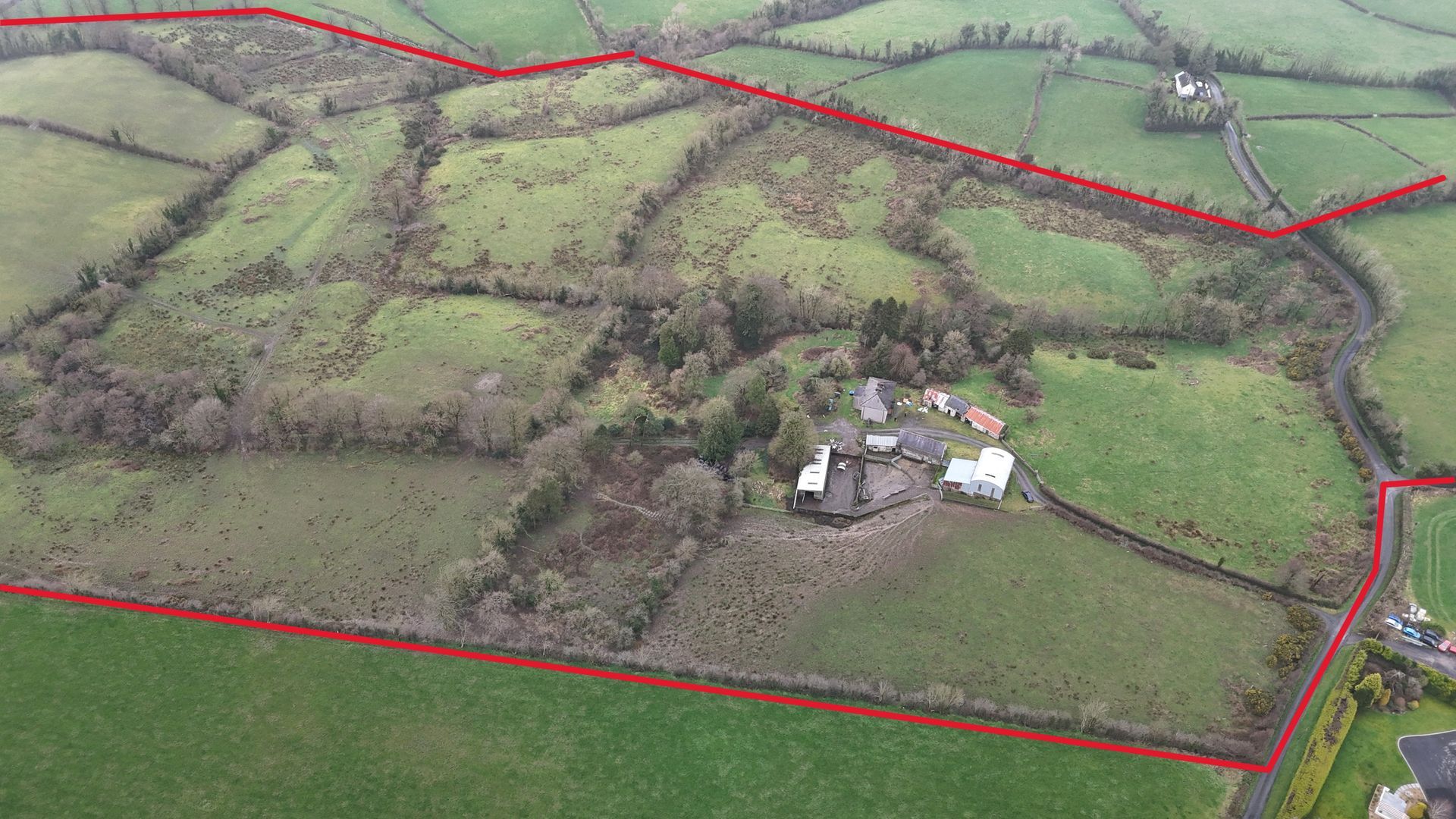 This exceptional property comprises a substantial four-bedroom detached dwelling, a range of agricultural outbuildings, and approximately 25.10 hectares (62 acres) of agricultural lands laid out in pasture. The holding enjoys a convenient location with excellent road frontage and offers immense potential for a variety of agricultural, equestrian, or amenity uses (subject to the relevant planning permissions).
