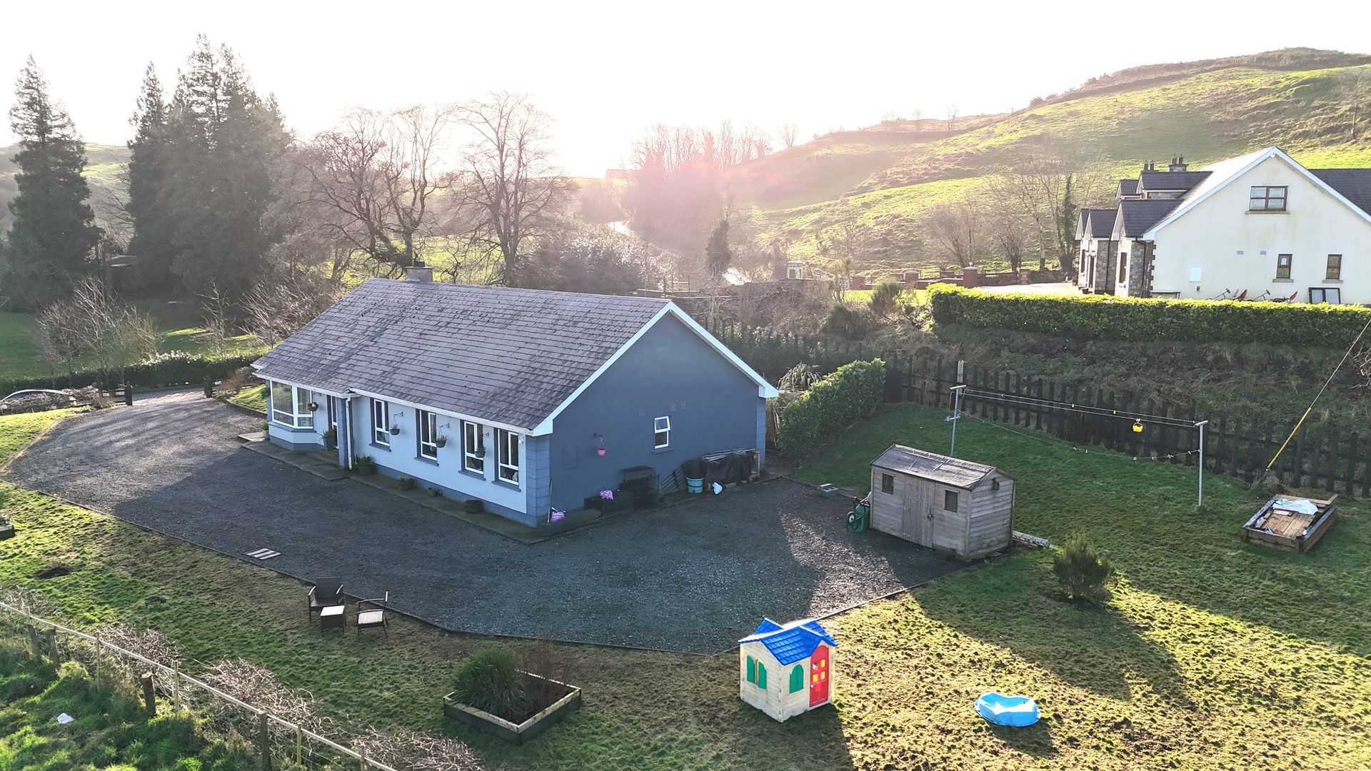 We offer for sale Carraig Beag , Bock Middle a delightful modern 4 bed bungalow , located on an elevated site overlooking the country side . Situated only 10min from Carrickmacross and 5min from Lough Egish business park 12 min from Castleblayney. Very modern fit out which can be seen from the photos . Excellent B3 BER rating allowing cheaper heating costs with possible benefit of obtaining a more attractive green mortgage rate . The property also has the benefit of recently fitted solar panels on the roof. The garden are extended just under 1 acre in layout with landscaped scrubs