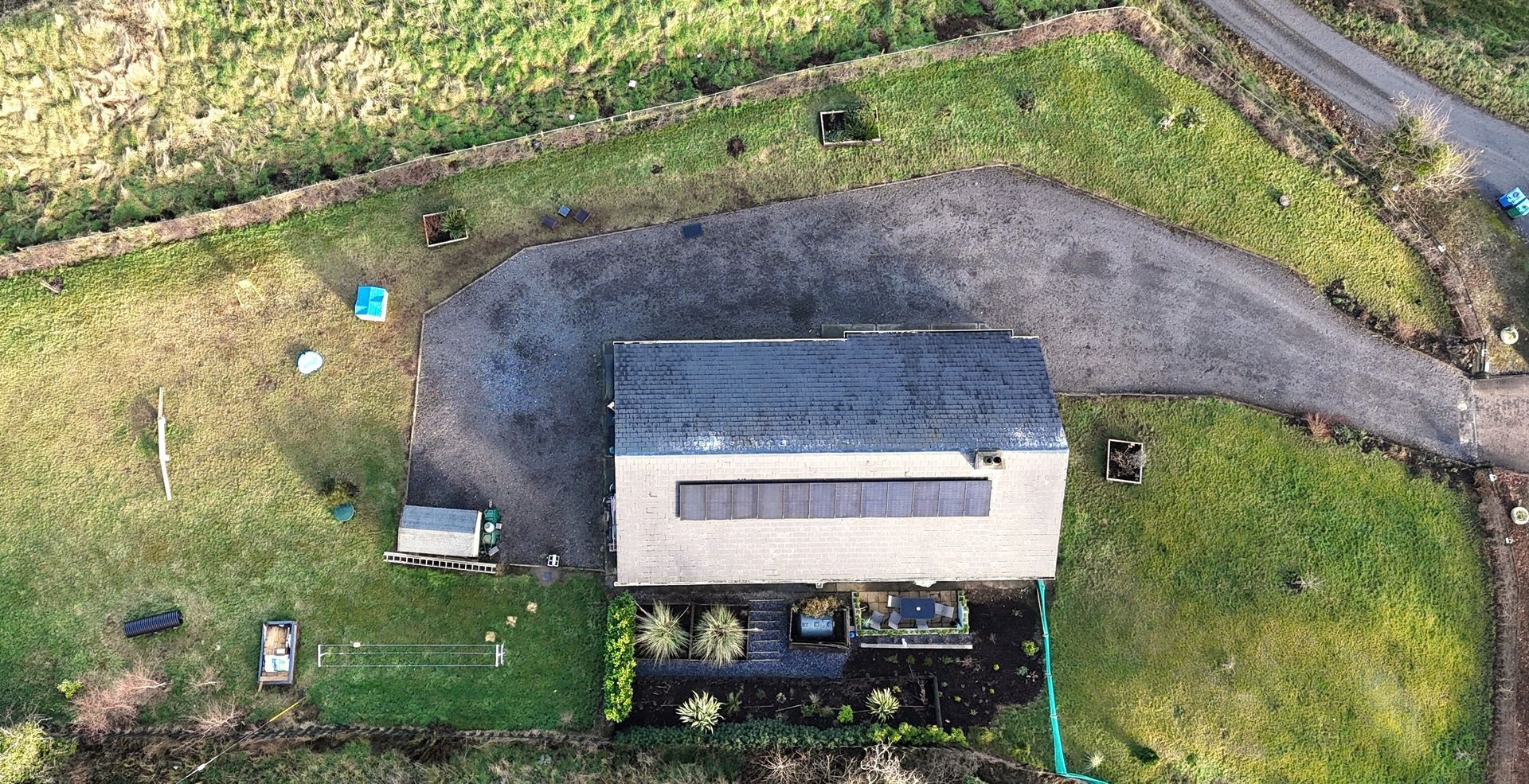 Oil fire central heating, inset stove in the lounge, and roof fitted solar panels.
